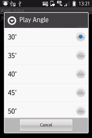 Observe que o ângulo é calculado a partir do sensor de aceleração; portanto, às vezes não pode desativar a tela de bloqueio quando você sacode o telefone.