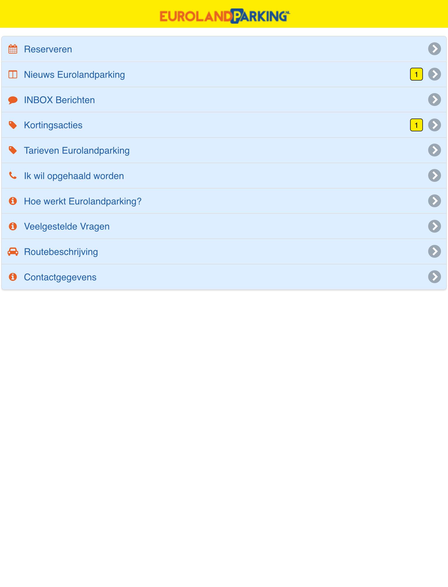 Com o nosso aplicativo, você pode reservar seu espaço de estacionamento em Schiphol de maneira rápida e barata. Você obtém descontos exclusivamente altos nas reservas por meio deste aplicativo. Não espere mais pelas promoções do Groupon, reserve diretamente no Euroland Parking Schiphol com apenas preços baratos! Sempre o mais barato!