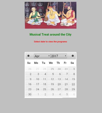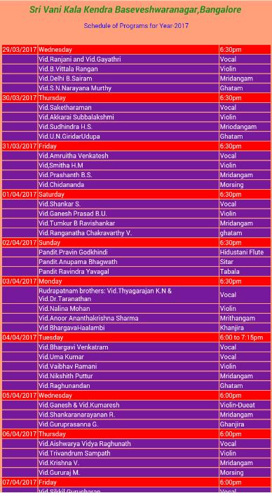 Se Chennai, na Índia, é conhecido por sua temporada de dezembro, então nosso Bangaluru está agora atrás! Em abril! Uma bonanza de concertos de música carnática em vários locais-todos com custo. Muitas oportunidades para a nossa fraternidade musical. Atualmente, se você deseja participar de um desses programas-que se escolher? Onde está? Para encontrar respostas para todas essas perguntas o que você faz? Você abre sua internet e navega! Mas todos não estão tendo sites. Alguns imprimem e distribuem phamlets. Mas você precisa coletá -lo. Mesmo Musicseason tenha recebido um, você o procure e digitalize. Armazene e aproveite. É gratuito para você.