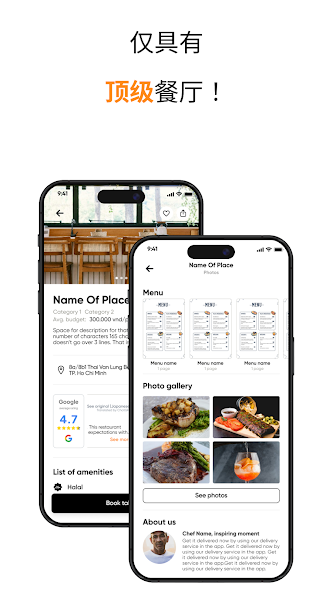Nosso recurso de reserva de restaurante fornece todas as informações necessárias, como críticas e fotos do restaurante e seus pratos, facilitando a localização e reserva de uma mesa no local perfeito.