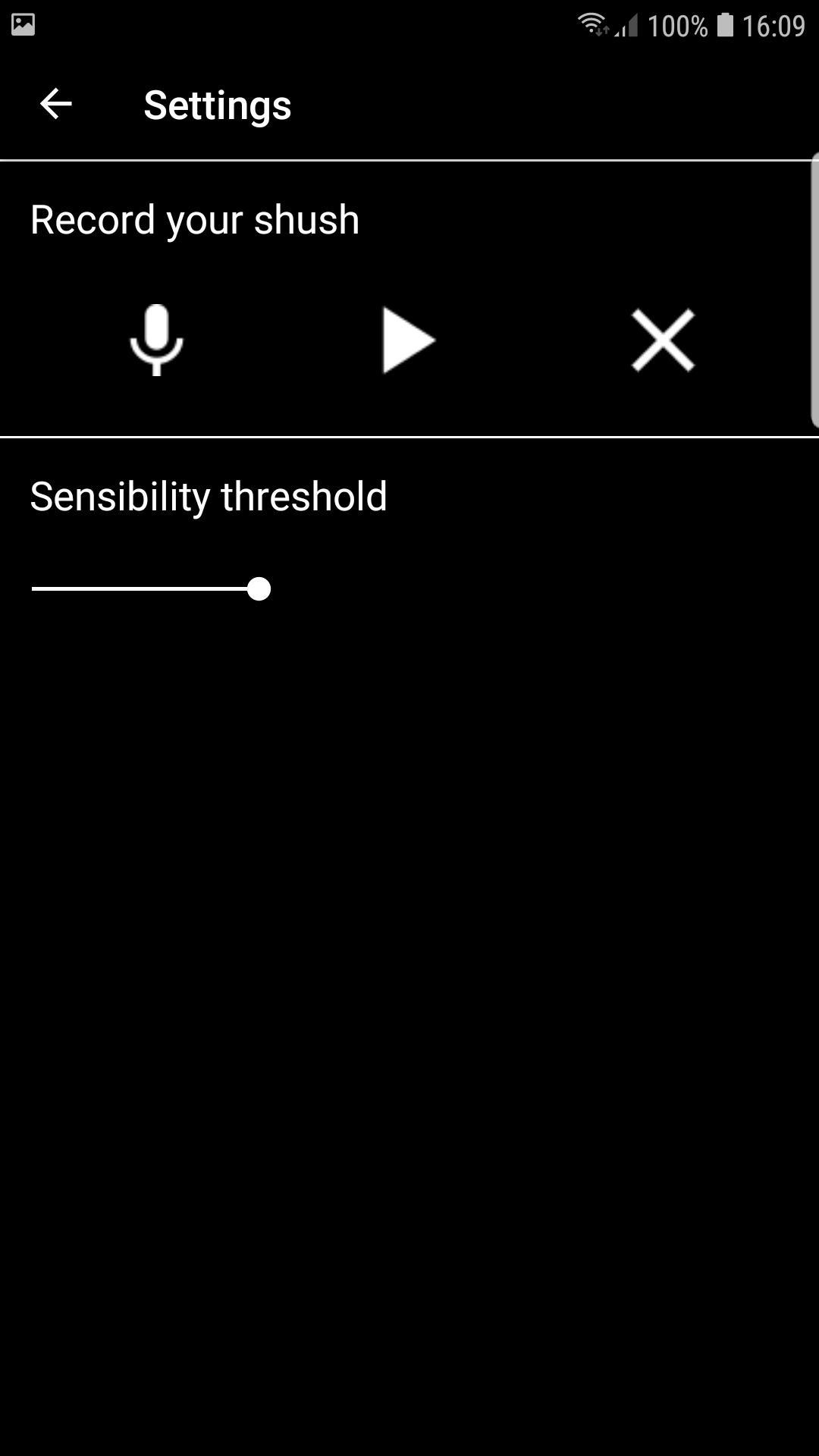• Um som shush é reproduzido quando o aplicativo ouve um som.