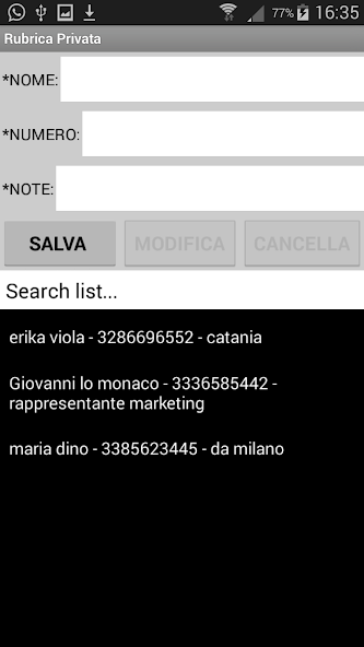 Existem três campos: nome; Número; Observação; tudo a ser concluído.