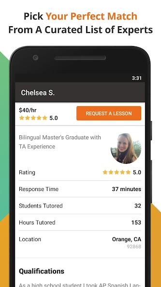 Com o aplicativo Wyzant , você pode se conectar rapidamente a novos especialistas no assunto - da química aos tutores espanhóis - a qualquer momento. Além disso, obtenha ajuda para a lição de casa, prepare -se para um exame ou respostas às suas perguntas de maneira rápida e fácil.