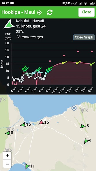 - Leituras de vento ao vivo de 40000 estações em todo o mundo.