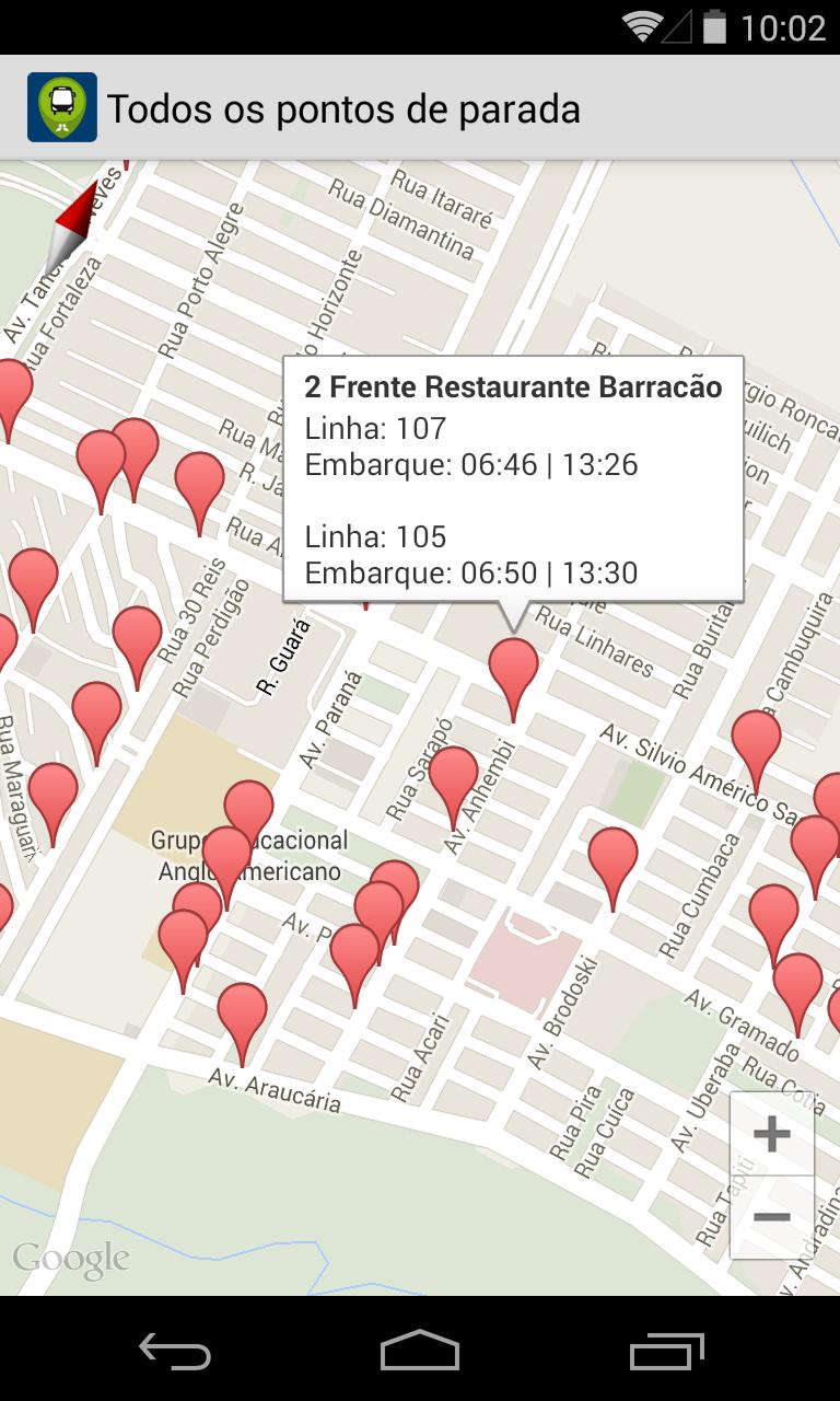 - Descrição de percurso e horário de embarque das linhas;