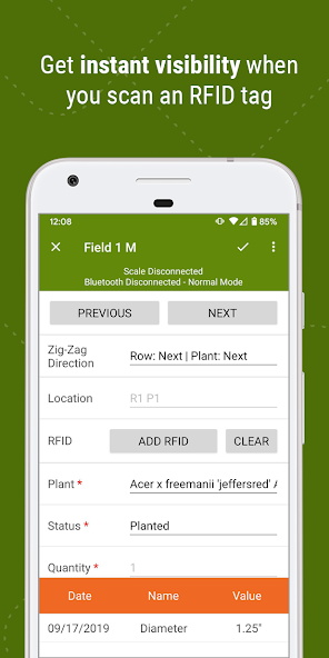 O aplicativo permite que os clientes aceitem o inventário ao vivo com seu telefone ou tablet enquanto estiver no campo. Ao sincronizar os dispositivos dos usuários com um scanner de identificação de radiofrequência (RFID), os usuários podem digitalizar árvores individuais e gerenciar dados.