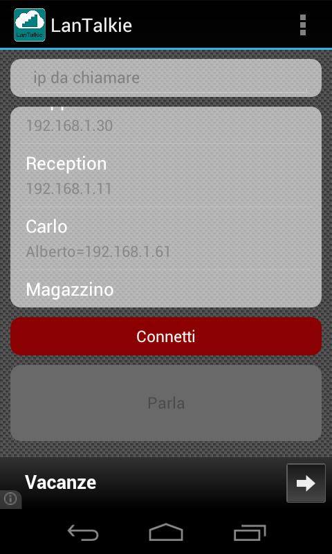 Em cada ativação do LanTalkie , o arquivo do livro de endereços será atualizado com o novo endereço IP do cliente.