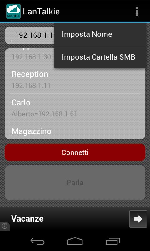 No primeiro início LanTalkie pedirá ao usuário seu apelido e a rota SMB do livro de endereços.