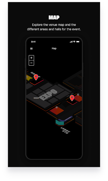 · Obtenha uma visão geral do local e as diferentes áreas do evento