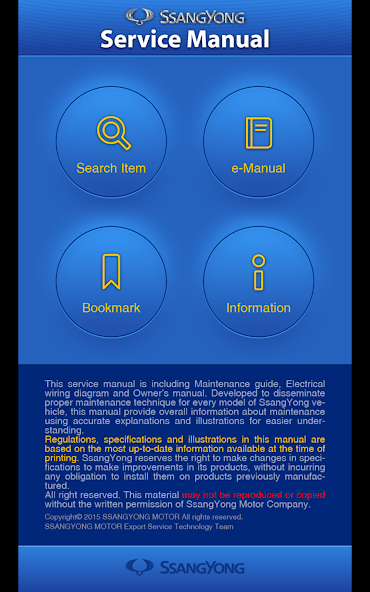 Este aplicativo é composto pelo manual de serviço, diagrama esquemático elétrico e manual do proprietário da KG Mobility Company e foi desenvolvido para disseminar técnicas de manutenção corretas para todos os modelos de veículos que nossa empresa desenvolveu.