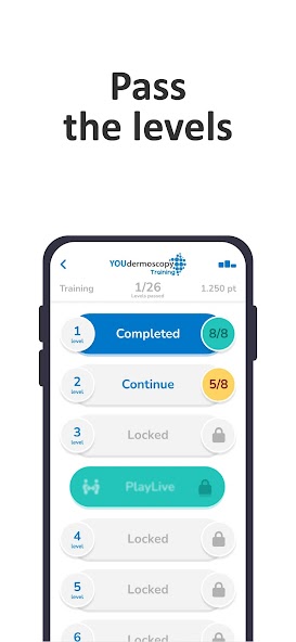 Ao passar no 3º nível, você terá acesso ao Live Live, um recurso inovador através do qual você pode solicitar ou fornecer uma opinião em tempo real em relação a um caso dermoscópico para seus colegas em todo o mundo, que estão conectados ao aplicativo.