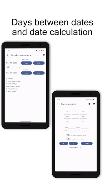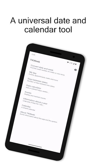Precisa converter entre um número de semana e uma data? Com este aplicativo você pode. Quer algumas informações sobre uma data, descubra se um ano é um ano bissexto, calcule o número de dias, dias úteis (dias úteis), semanas, fins de semana, reviravoltas de mês e reviravoltas no ano entre duas datas e adicionar ou subtrair dias, semanas ou meses a uma determinada data? Com TKWeek , não é um aborrecimento. Até uma visão básica do calendário está ao seu alcance. Você pode usá -lo para sinalizar dias de folga. Basta tocar e segurar até que a cor mude. E com o meu dia você vê o que está acontecendo em um determinado dia.
