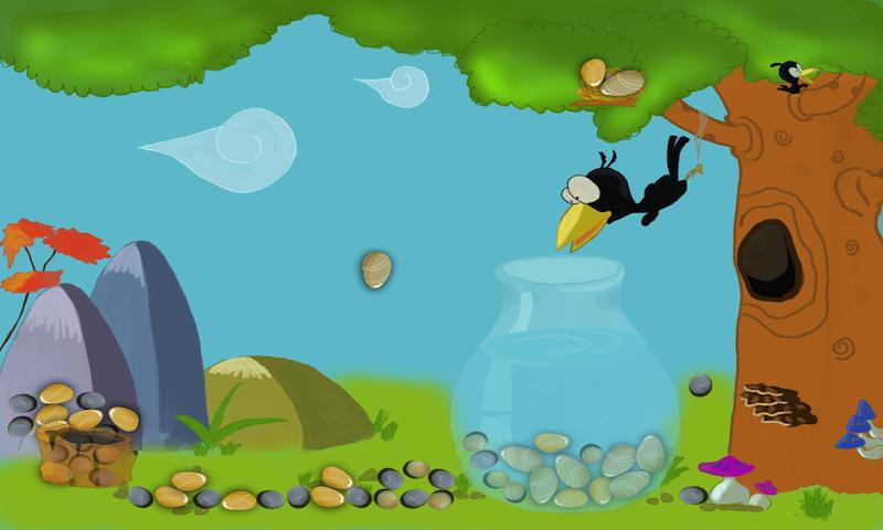 É de maneira muito simples, neste jogo, o corvo está enredado em uma árvore. Para deixar o corvo poder beber a água, você deve jogar incessantemente as pedras na garrafa até que o corvo possa beber a água.