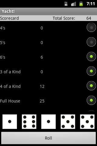 Um jogo clássico de dados de pôquer, o iate é semelhante aos jogos como Yot, Generala, Cheerio, Yatzy e Yahtzee. O jogador tem 5 dados e tenta criar combinações diferentes para obter a pontuação mais alta!