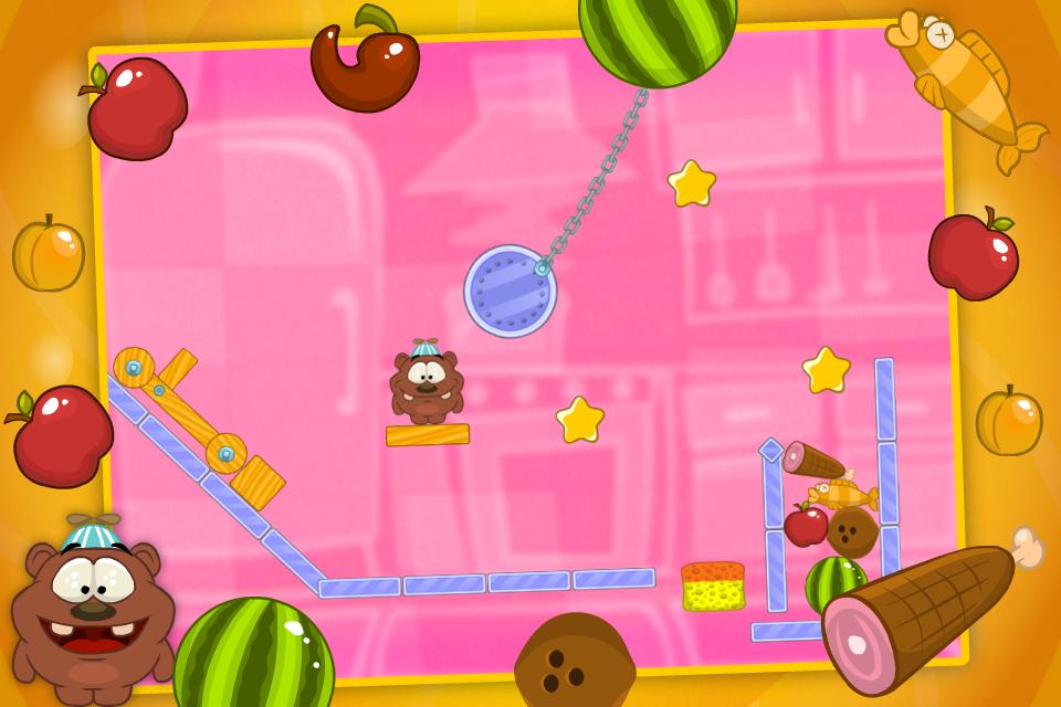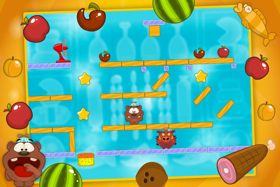 Um pequeno urso chamado Bobby tem um sonho. Ele quer cozinhar uma sopa de frutas. Ajude o pequeno urso a dar uma mordida e coletar todos os ingredientes para a sopa de frutas. Use os elementos do ambiente para atingir seu objetivo. Tenha cuidado e não coma os pimentões - eles são muito quentes. Observe as frutas atentamente, caso contrário elas podem ser comidas por porcos famintos. Colete as estrelas para ganhar mais pontos. Boa sorte!