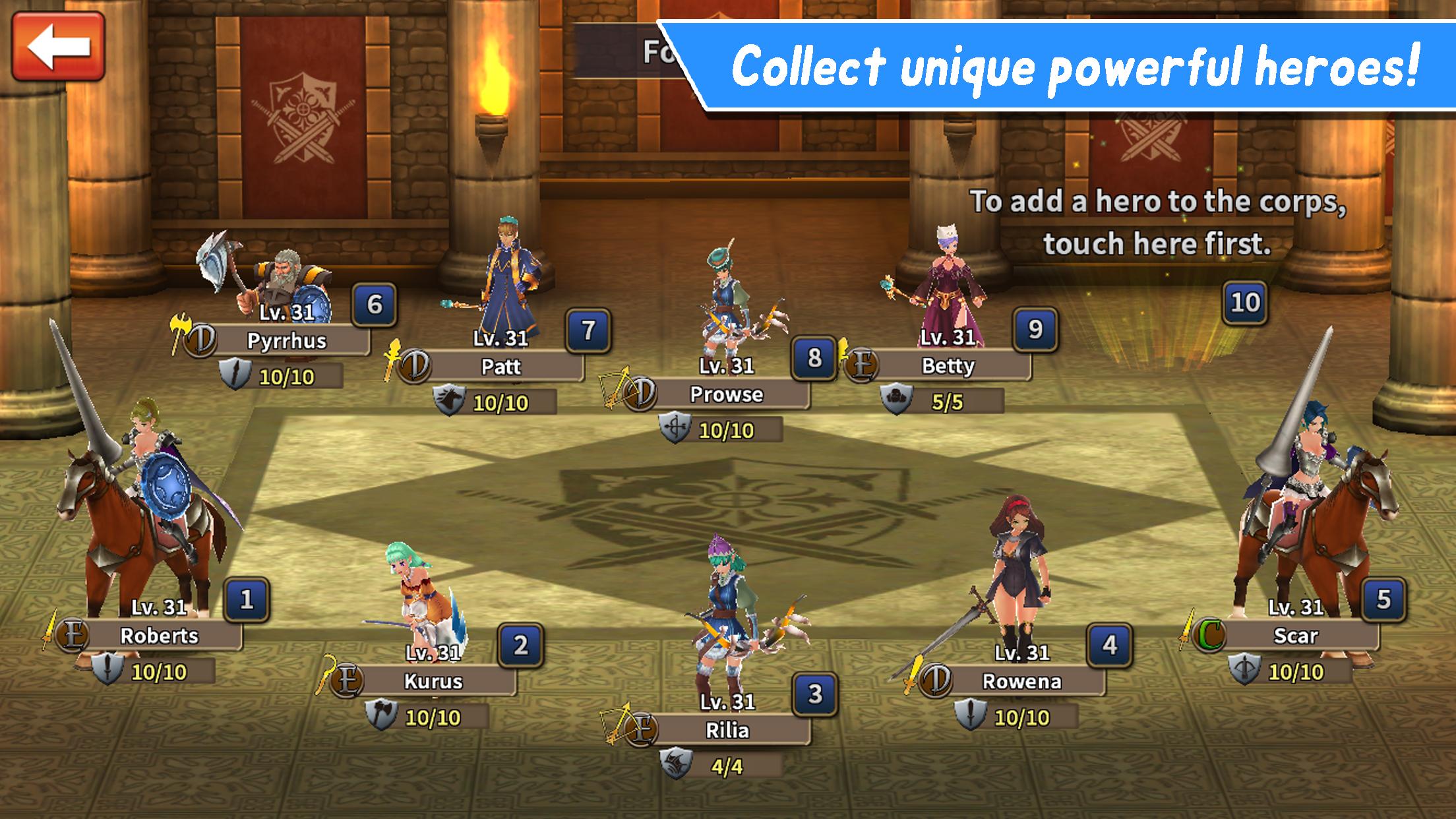 - Os heróis têm habilidades únicas, então coloque seus heróis estrategicamente para a batalha