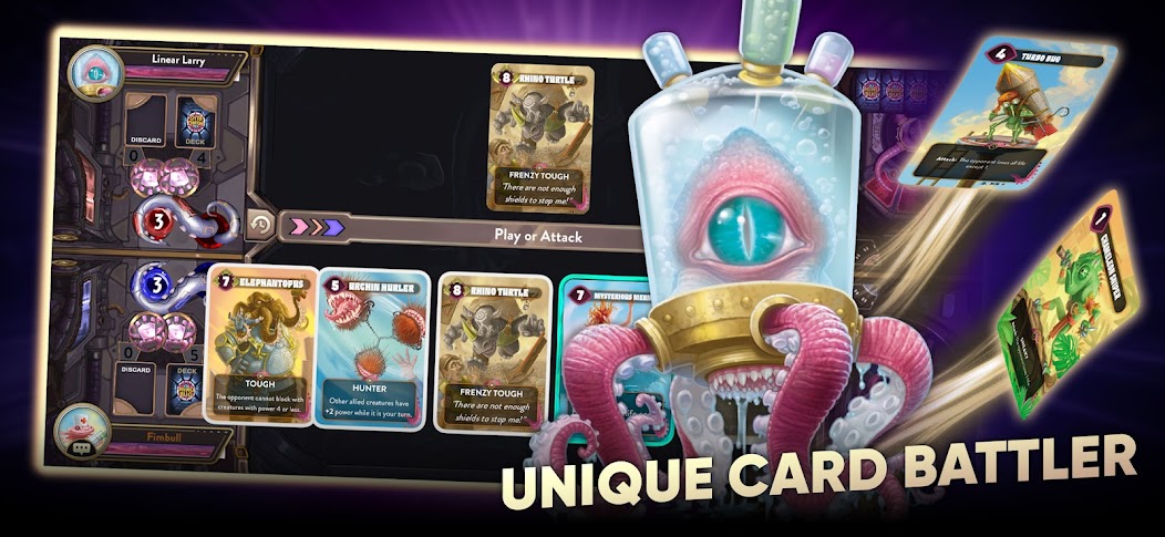Embora a Mindbug seja extremamente fácil de aprender, o jogo o surpreenderá com novos e emocionantes desafios e combos. O mecânico exclusivo da Mindbug permite controlar as criaturas de seus oponentes e leva a uma tomada de decisão única que exige até jogadores de jogos de cartas veteranos para ajustar seu estilo de jogo tradicional.