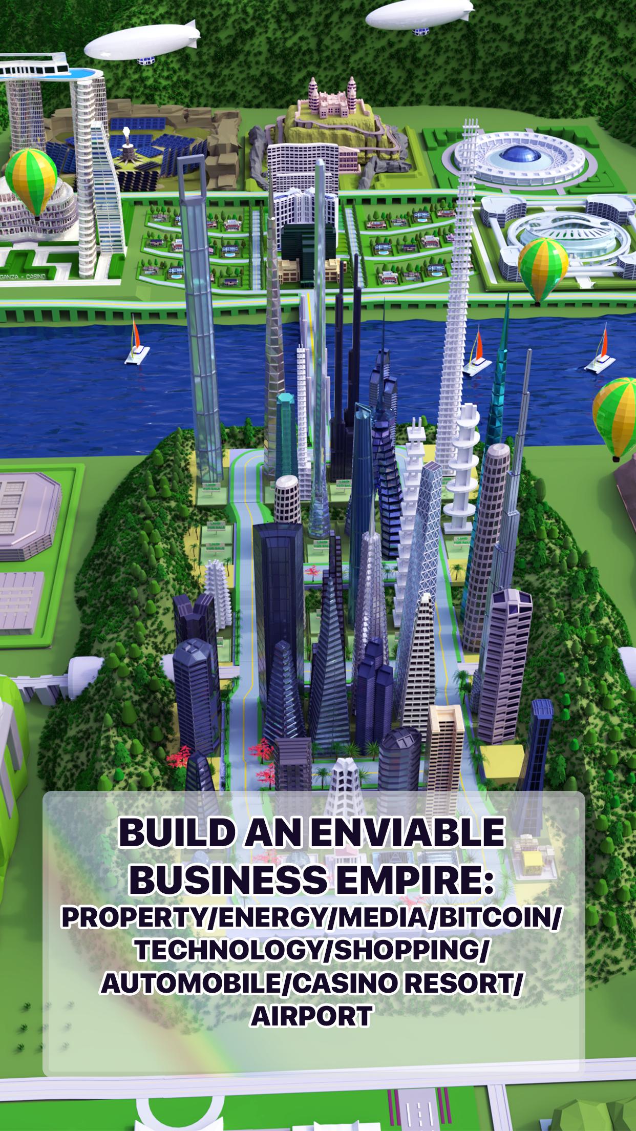 Diversifique seus investimentos: possua uma fábrica de carros, um aeroporto, uma fazenda solar, um parque eólico, um shopping, um palácio real, um estádio esportivo, um resort de cassino e uma mina de bitcoin.