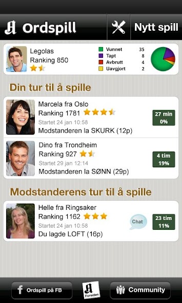 A versão da Web existe desde 2008. O perfil de jogador já no www. Ordspill .Não você pode usar o mesmo login e recuperar sua lista de amigos que você construiu lá.