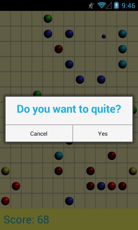 O jogo é um clone da Line 98 . O objetivo é marcar o maior número possível de pontos, fazendo com que as bolas de uma cor formem várias linhas. Use o toque para mover as bolas.