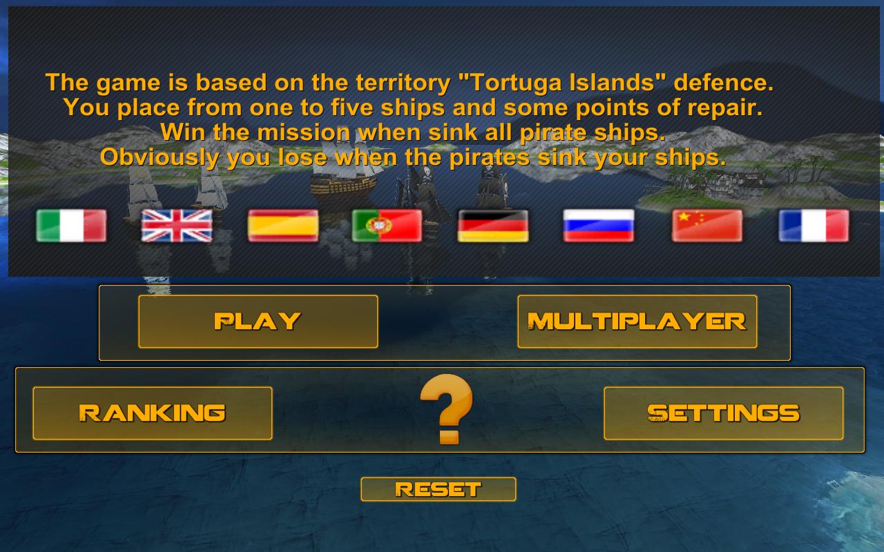 Comanda uma frota de navios de vela "brig" para defender as ilhas de Tortuga pelo ataque do rei pirata.