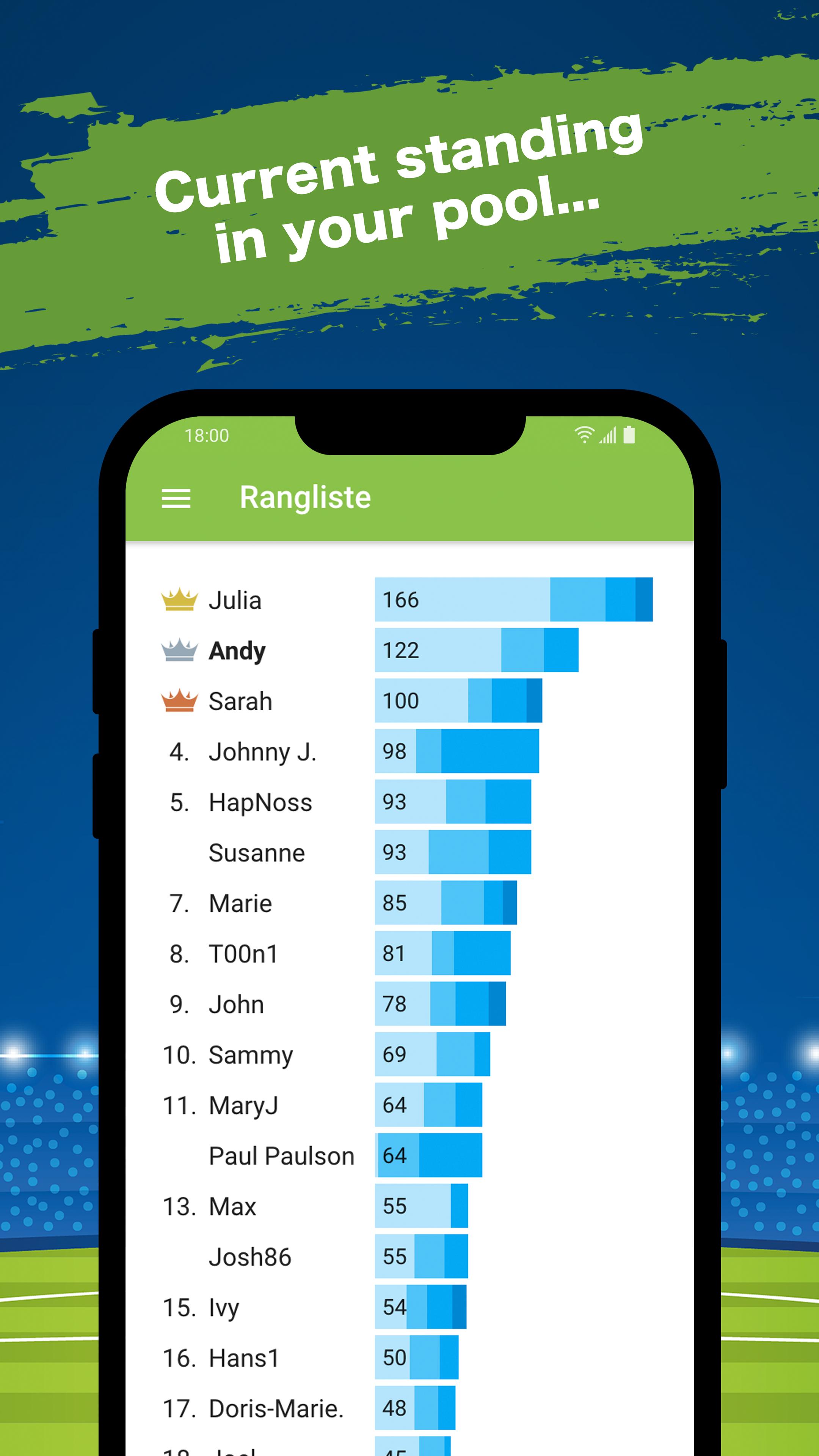 - Você acabou de encontrar o aplicativo depois que o torneio já começou? Não tem problema, agora você ainda pode dar um pouco de campeão mundial e promoveu equipes após o início do torneio (pode ser ativado/desativado por piscina).