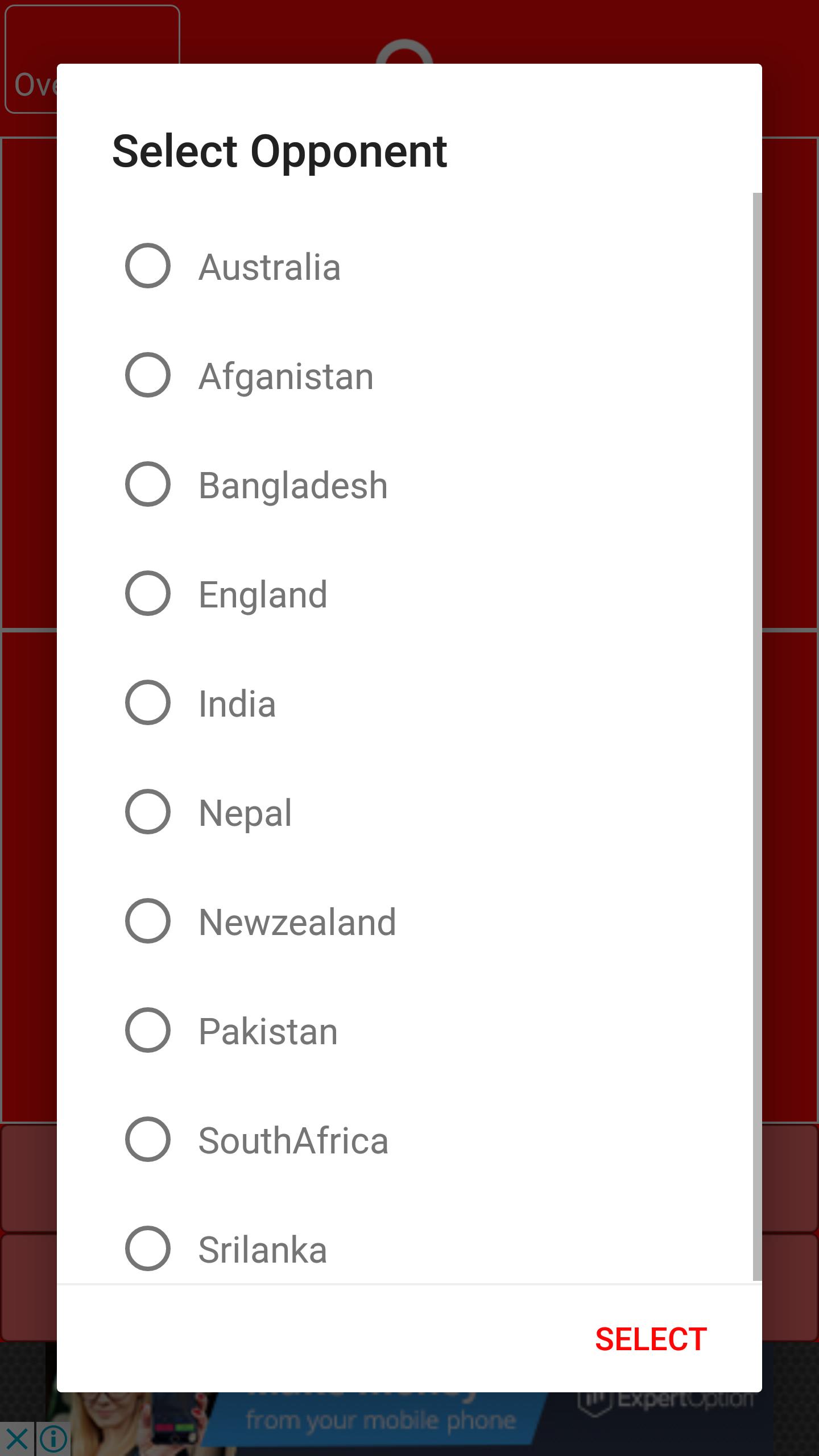4. Os usuários podem definir os overs (5 overs para 50 overs)