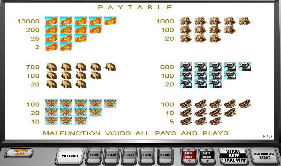 O slot de ouro asteca é de 5 rolos e até 21 linhas de pagamento. A máquina de caça -níqueis de ouro asteca apresenta símbolos temáticos astecas óbvias, como máscaras tribais, um templo, ídolos e milho e alguns símbolos menos do que óbvios, como tomates e lhamas (sim, realmente). O ídolo dourado é o selvagem, mas aparece apenas nas linhas 2, 3 e 4. A cabeça do dragão dourado serve como o símbolo do jackpot.