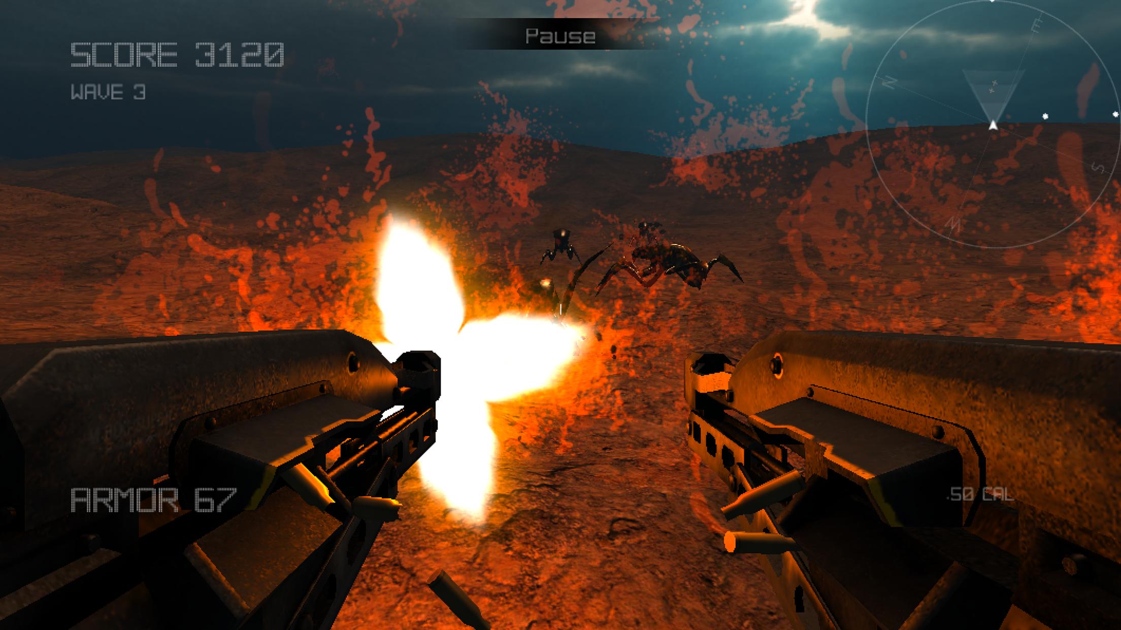 Mantenha suas vidas, por posições defensivas, disparando armas nas infinitas ondas de Alien.