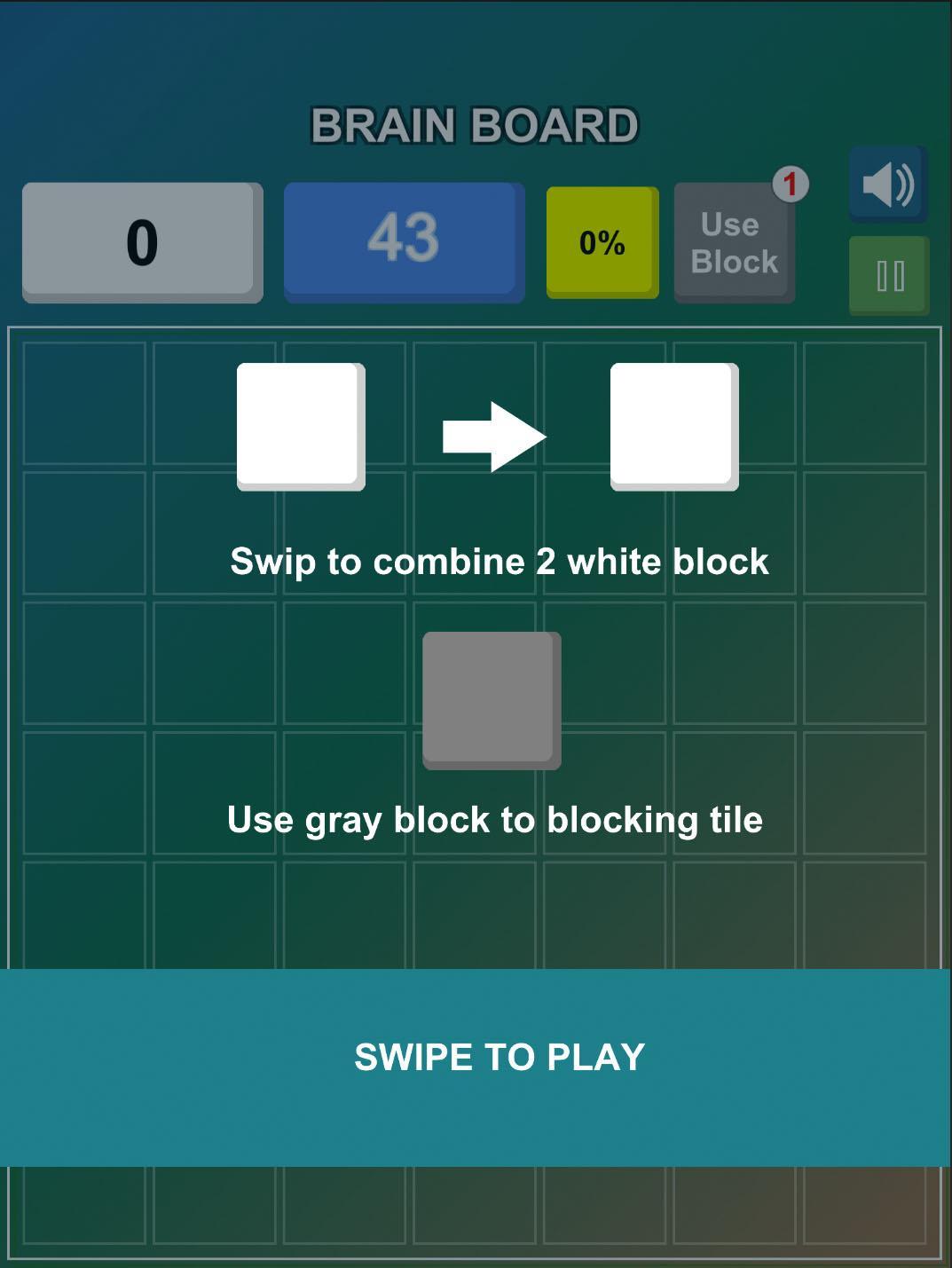 Brain Board , deslize para mover todo o bloco e combinar 2 blocos brancos para obter pontuação, use Bloco Cinza para bloquear o ladrilho, espero que você se divertir neste jogo