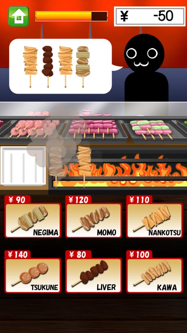 Seus clientes solicitarão Yakitori específico. Faça certo e obtenha o tempo de bônus. Falha e você perderá um cliente e um tempo precioso :(.