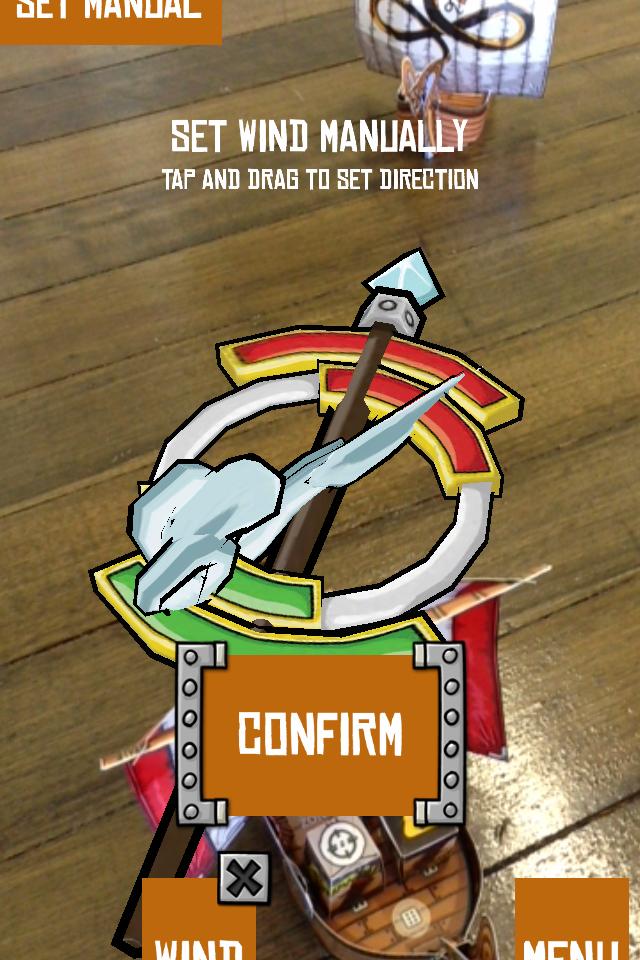 O aplicativo Viking Horda: Papercraft Helper, incluindo rolo de dados e indicador de vento de realidade aumentada.