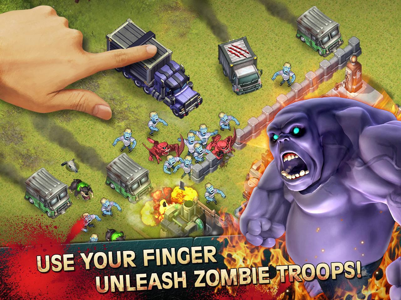 ★ Manipular armas de zumbi - deslize o dedo para lançar veículos de assalto zumbi na fortaleza inimiga, liberando zumbis aterrorizantes.