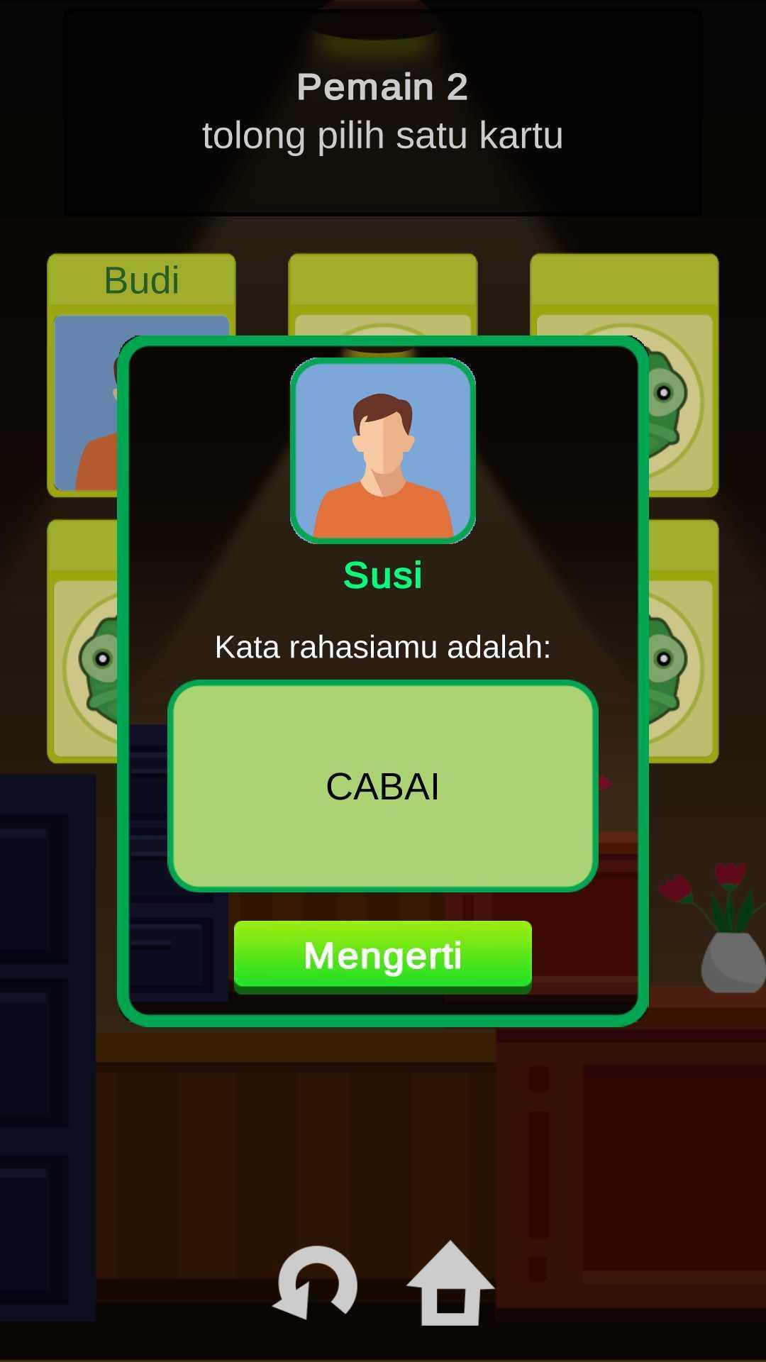 - Disse o segredo: coloque um smartphone para todos os jogadores para preencher seu nome e obter a palavra secreta. Os civis receberão a palavra correta, o agente secreto receberá palavras ligeiramente diferentes, e o Sr. Mysterious receberá o sinal ^^