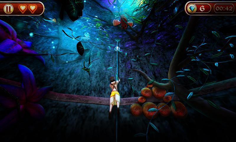 Toque e segure na metade esquerda da tela para mover o personagem para baixo em cordas e escadas.