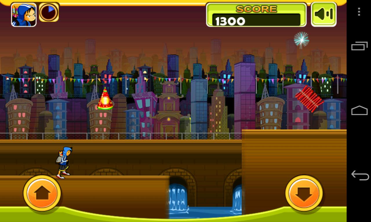 Uma corrida para iluminar as ruas, uma corrida para iluminar seu mundo. Três irmãos decidem correr e coletar os biscoitos para celebrar o Festival das Luzes. Ajude -os a sair das ruas, evitando muitos dos obstáculos que surgem. Há fogo nas ruas, barricadas nas estradas, vidas limitadas, uma perda da qual será marcada por um irmão desaparecido. Colete o foguete para cobrir uma distância mais rápido e obter uma pontuação melhor que preencherá a barra de vida. A barra de vida, dependendo do seu desempenho, ajudará você a recuperar seu irmão de volta, oferecendo uma vida extra. Comece a correr !!
