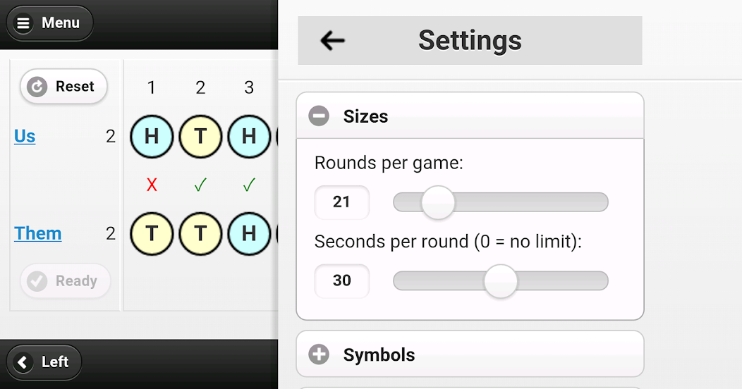 Mais importante ainda, o aplicativo permite que você jogue contra oponentes humanos conectando seus dispositivos móveis ao Wi-Fi, para que você possa aplicar o que aprendeu. Você pode controlar o nível de dificuldade, definindo o número de rodadas por jogo como um número ímpar entre 1 e 99. O requisito de ser um número ímpar alavanca uma vantagem que Matching Pennies com rock, papel e tesoura. Não há possibilidade de empate em um jogo com um número estranho de rodadas. Isso o torna um método melhor para resolver divergências com seus amigos!