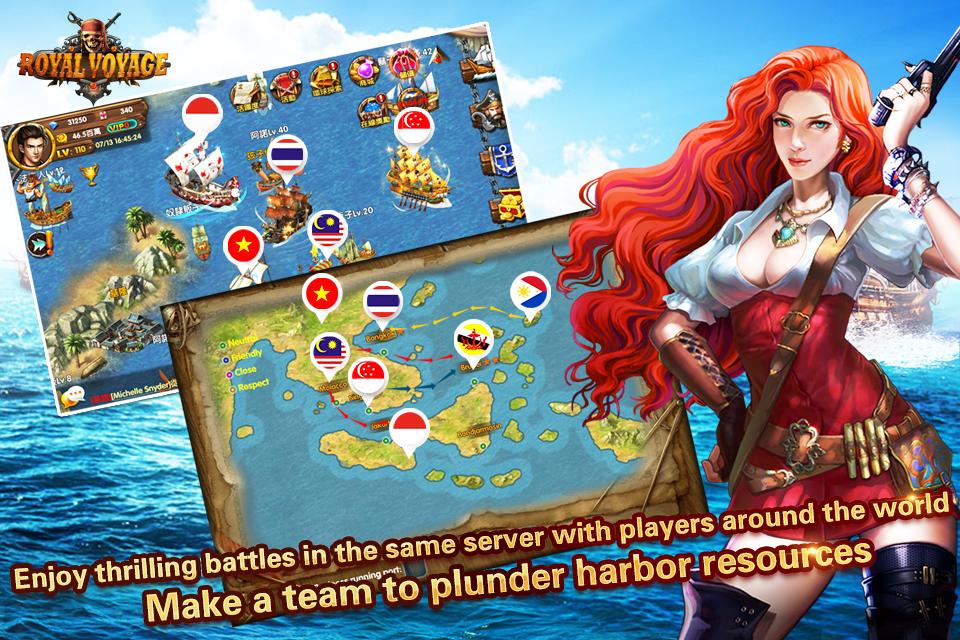 Royal Voyage brings players a world where three forces(European Fleet, East Dynasty, Caribbean)are seeking for hegemony in seas and oceans. Players will divide the world again and fight for their territories.