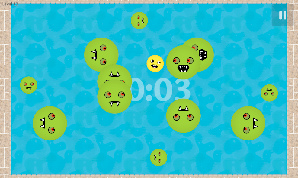Mova seu sorriso inclinando o telefone. Se você pegar um inimigo menor, os devorará e adquirirá tamanho para comer inimigos ainda maiores. Se eles forem maiores, eles vão te comer e você perderá.