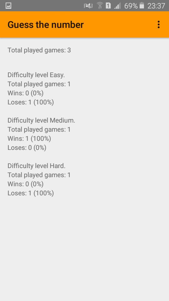 Guess The Number é um jogo em que você deve usar sua lógica para adivinhar um número secreto de 4 dígitos selecionado pelo computador no início do jogo. O número é formado com dígitos de 0 a 9; Cada dígito aparece uma vez no máximo. Esse número é adivinhado por você por meio de várias tentativas. Uma tentativa consiste em um número proposto, selecionado por você e a resposta do computador. O computador diz, em sua resposta 2 dígitos. O 1º dígito mostra quantos dígitos você adivinhou e o segundo mostra quantos dígitos na posição certa. Usando informações da resposta do computador, você deve Guess The Number usando o mínimo possível de movimentos. Boa sorte!