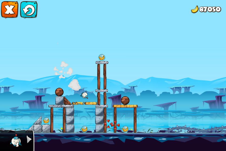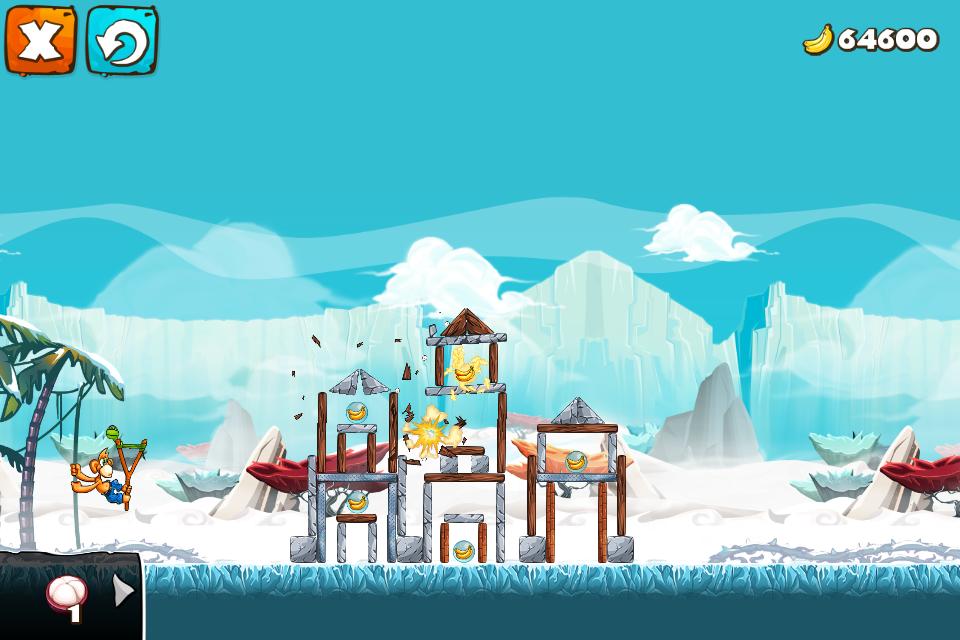 Você brinca com um macaco fofo e atira com um estilingue para limpar os obstáculos. Você pode construir seus próprios níveis e desafiar seus amigos a ganhar muitas bananas. Este modo Challenger está disponível apenas quando você limpa um certo nível no jogo. Viaje por várias terras exóticas e junte -se a nós na busca de se tornar o rei da selva.