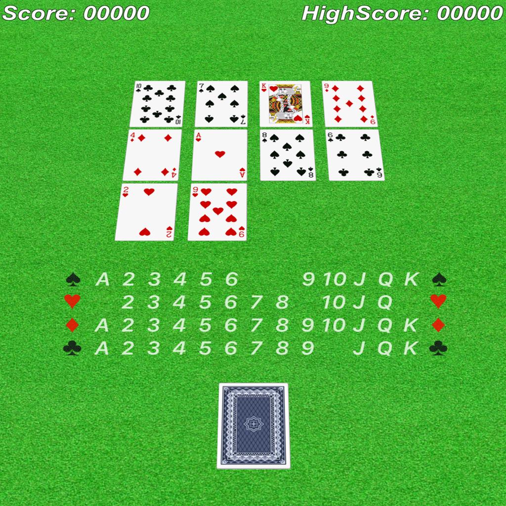 Organize quatro cartas em campo dos 52 decks (pilha de cartas).
