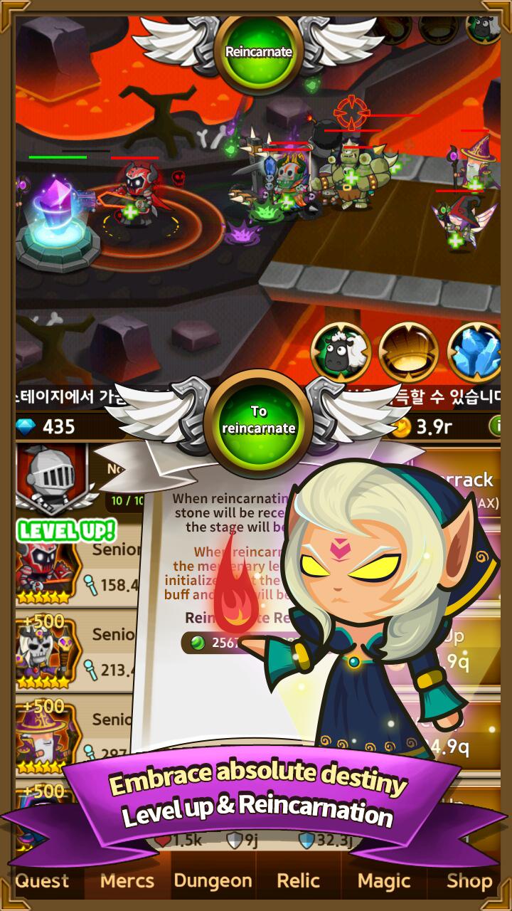 Fortaleça seus Mercs para lutar contra o poderoso exército através da reencarnação.