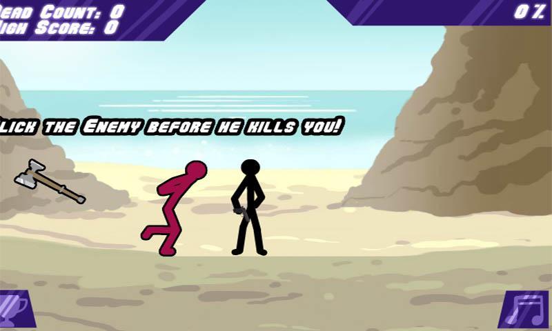 É ótimo e desafie o jogo de habilidades rápidas. Neste jogo, sua missão é matar todos os stickmen, que vêm de todas as direções.