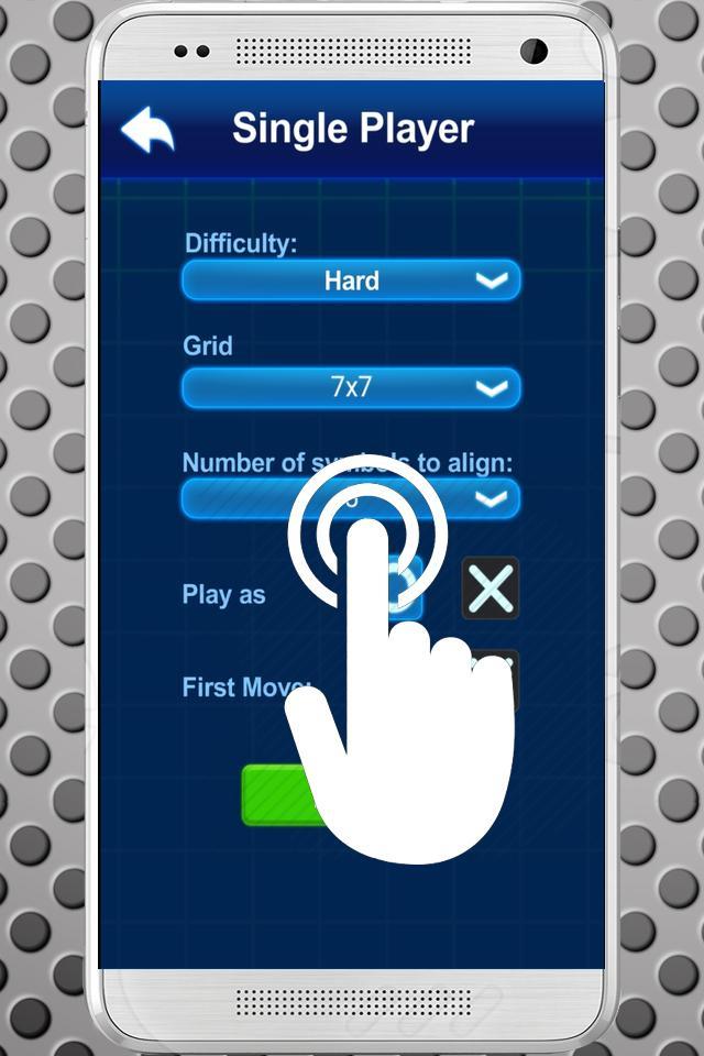 O jogador se revezam marcando os espaços em uma grade 3 × 3 (altere a grade máxima 11x11).