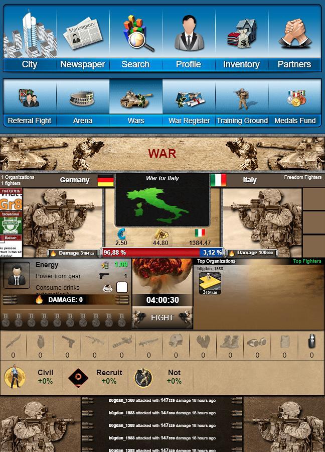 Um jogo de navegador econômico, político, social e militar online
