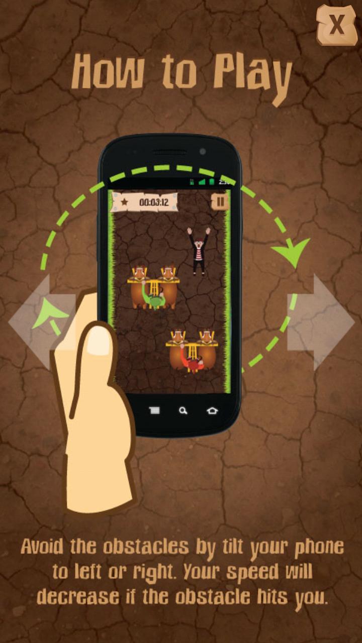 Karapan Sapi é uma corrida de vaca de Madura, Indonésia. Originalmente, a corrida não é apenas sobre o prêmio, mas também aprende o valor da competição e do jogo justo. Neste jogo, Karapan Sapi será digitalizado e disponível no seu smartphone! Mova o Karapan Sapi e bata seu oponente, deslizando o dedo o mais rápido possível. Evite o obstáculo incline o telefone para a esquerda e a direita. Depois de atingir o obstáculo, sua velocidade diminuirá imediatamente. Este jogo o desafiará em cinco níveis diferentes.