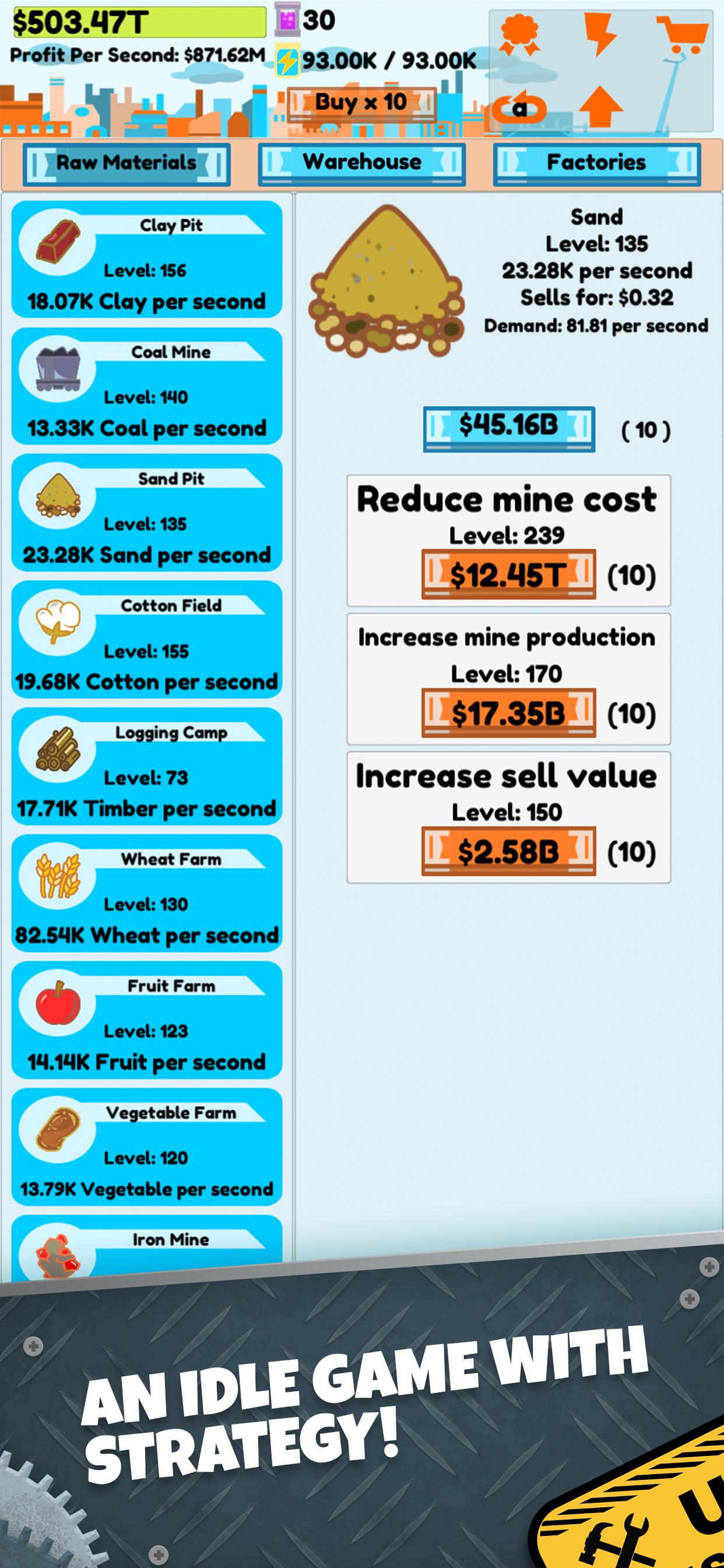 Faça muito dinheiro e atualize suas fábricas no melhor simulador de magnata da fábrica gratuito. Construa seu império desde o início!