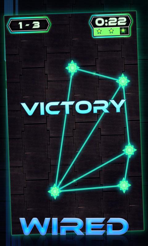 O objetivo do Wired , um jogo de cérebro livre e quebra -cabeça, será para desamarrar as redes laser emaranhadas. Basta girar todos os raios de néon da cor amarela para verde.