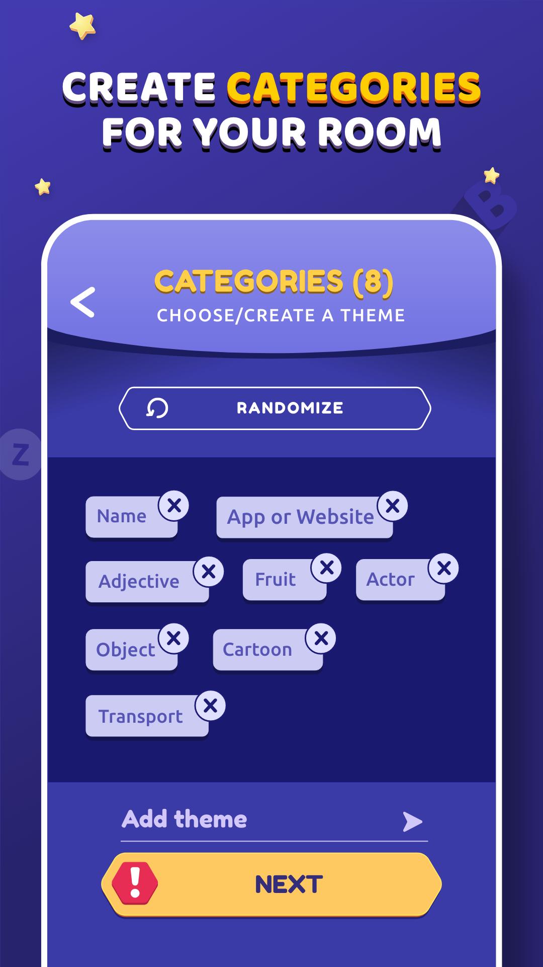No primeiro momento são escolhidas categorias que servirão de base para a dinâmica do jogo. Categorias como: Nomes, Animais, Objetos e assim por diante são exemplos disso. Uma vez definidos, uma carta aleatória é dada aos jogadores e um novo turno começa. Todos devem completar cada categoria usando uma palavra que comece com uma letra aleatória. Aqueles que preencherem todas as categorias primeiro pressionam “STOP!” botão; depois disso, todos os jogadores restantes têm suas respostas interrompidas imediatamente. Ao votar, os jogadores analisam todas as respostas e verificam se são válidas ou não. São somados 10 pontos para cada resposta aceitável, 5 para respostas repetidas e nenhum para respostas ruins. Este processo se repete até que uma rodada limite seja atingida.
